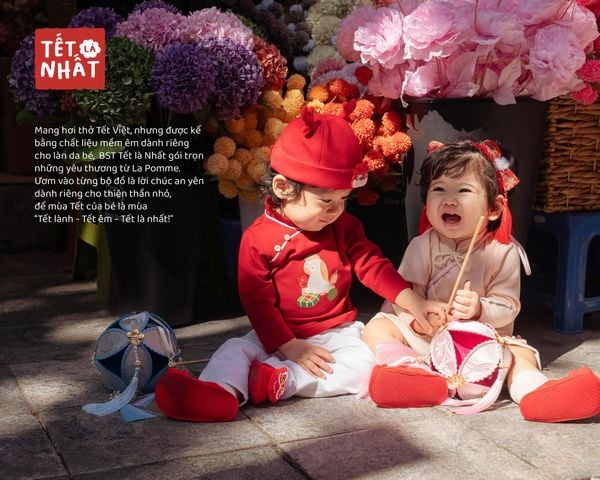 Năm nay, La Pomme tự hào mang đến BST "Tết Là Nhất" – lời chào đầu tiên trong mùa Tết 2026, với mong muốn nâng niu hồn Tết Việt trong từng bộ trang phục, từng chi tiết. Những nhà thiết kế đã khéo léo chắt lọc tinh hoa Tết xưa, từng họa tiết cùng đường nét duyên dáng, được kể lại theo cách riêng: vừa hiện đại, vừa gợi mở, vừa đủ để các bé cảm thấy tự hào về cội nguồn của mình.