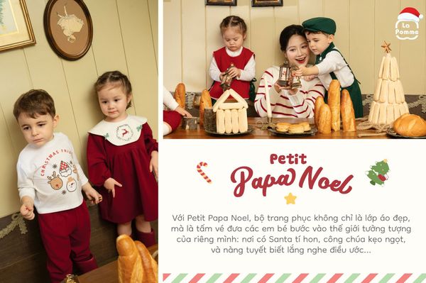 Một mùa Giáng Sinh nhiệm màu nữa lại gõ cửa, mang theo biết bao ước mơ nhỏ xíu, những niềm vui trong veo của bé con. Năm nay, La Pomme mang đến một Bộ sưu tập Giáng Sinh đặc biệt – Petit Papa Noel, nơi những em bé được hóa thân thành các nhân vật Noel trong thế giới đảo ngược đầy phép màu. Không những thế La Pomme còn tặng Mẹ và bé một đảo quà đặc biệt, đầy ắp niềm vui và sự đáng yêu dành riêng cho mùa Noel này!
