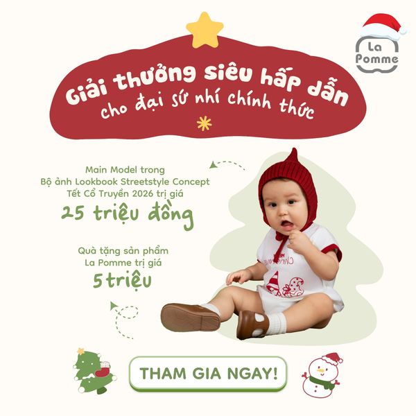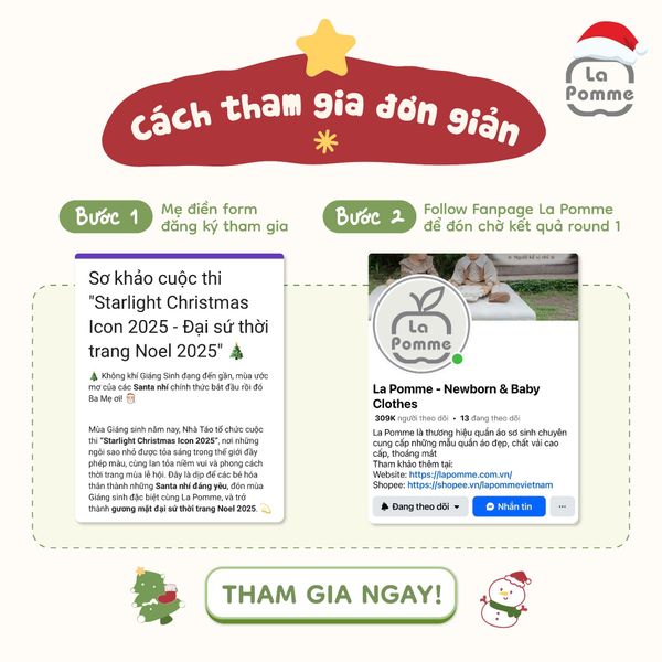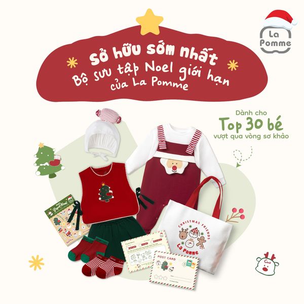 Mùa Noel đang về gần với không khí rộn ràng và ánh đèn lung linh. Năm nay, La Pomme tự hào mang đến cuộc thi "Starlight Christmas Icon 2025 - Đại Sứ Thời Trang Noel 2025" - nơi các thiên thần nhỏ sẽ hóa thân thành những ngôi sao sáng nhất trong mùa lễ hội kỳ diệu này!
